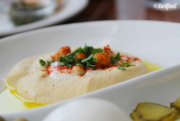 Даже для кремообразного хумуса вам не понадобятся ни ложка, ни вилка. Во-первых, хумус с тарелки можно собирать свежеиспечённым хлебом, а во-вторых, правильней это делать четвертинкой луковой чешуйки — лук и соленья обязательно подаются к каждой порции.