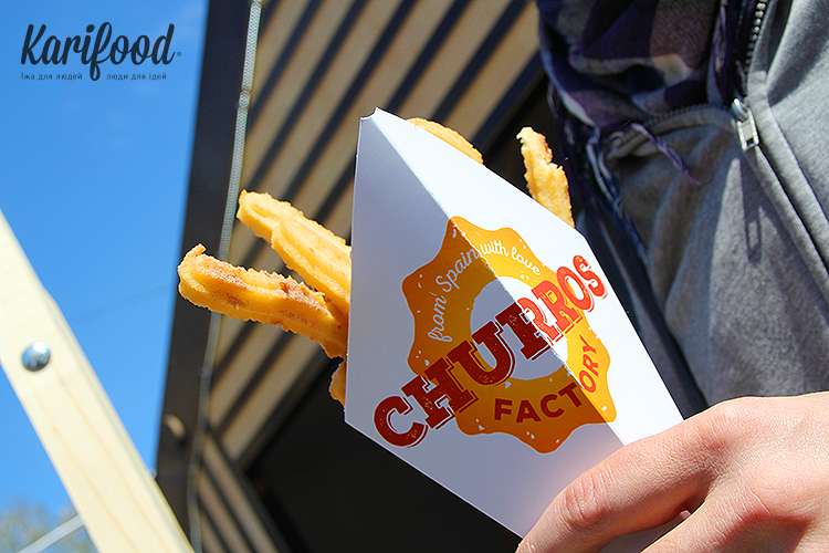 Из новичков особенно порадовали Churros Factory, которые готовили испанские чуррос и подавали их с шоколадом, карамелью, ванильным кремом и сахарной пудрой, изменив немного оригинальный рецепт — вместо сочащихся жиром классических «петелек» во фритюре, ребята предложили более хрустящее и плотное тесто в виде «палочек-огурцов».