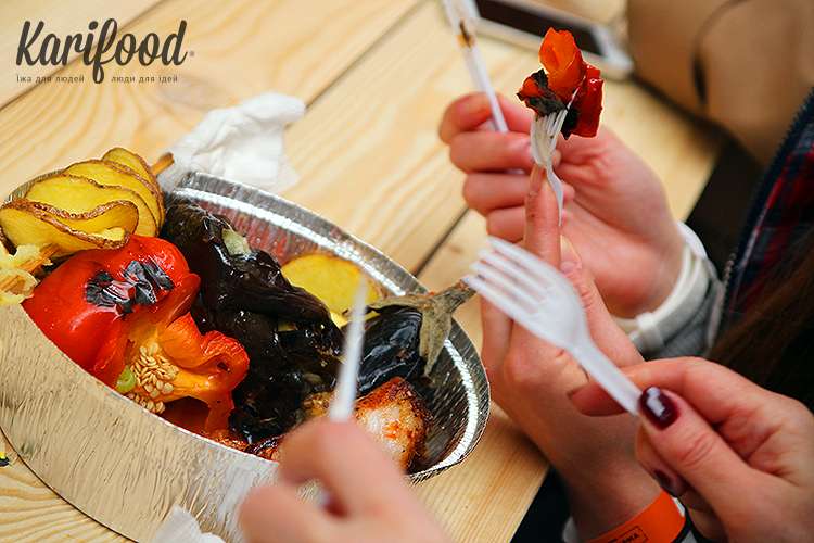 Запомнились так же New York Bagel cafe, не просто подававшие закуски в хлебе (на Десятой уличной еде съедобная посуда была популярным форматом) — хлебные коробочки для рататуя пекли прямо на фестивале. Да и бограч в хлебной тарелке — к снежному апрельскому дню был актуален, как никогда!