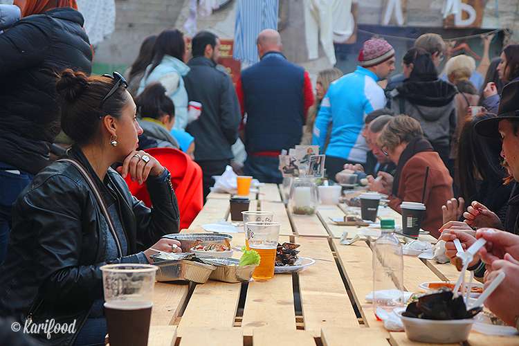 Фестиваль живёт свой камерной, фестивальной жизнью, раз в месяц превращаясь в пёстрый город вкусов, где у вас на глазах пекут пирожные и камабер, мидии и сэндвичи-кубанос.