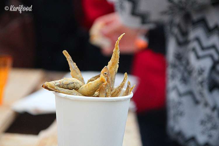 Уличная еда балует своих посетителей: устрицы, мидии, жаренные каштаны, просекко, свежеприготовленная форель, барабулька с Привоза, а теперь ещё и трюфеля, в общем, ничего удивительного, что за простыми чебуреками очередь стояла оба дня с самого утра до позднего вечера — не всё же лобстерами закусывать!
