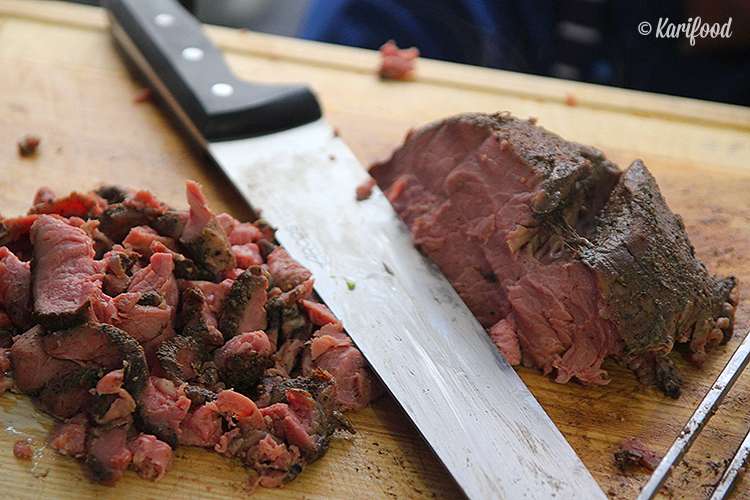 Но удивительные метаморфозы с ценой случились и с самым популярным сэндвичем фестиваля — пастрами от New-York Pastrami Sandwich. Ещё в субботу половинка чиабаты с мясом стоила 55 гривен, а в воскресенье её уже продавали за 65.