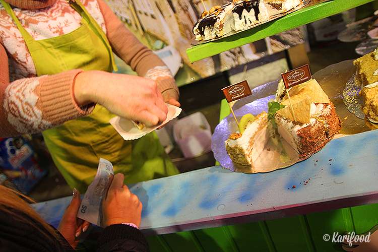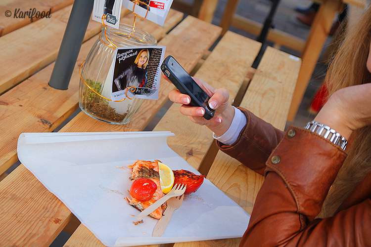 Что на это говорит Уличная еда? Обещает, конечно, разобраться, вплоть до введения штрафов. Но вот вам пример: дама со стенда Тірамісу, которая брала деньги и теми же руками (перчатки — для слабаков, мы помним!) выдавала сладости и которой Karifood сделал замечание, на следующий день по-прежнему стояла за прилавком и, кажется, уже из принципа, не надевала перчаток. Ну да, за всеми не уследишь, признают в Уличной еде, но, похоже здесь вообще ни за кем и ни за чем не следят особо.