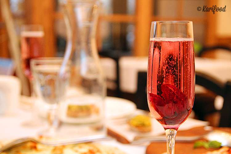 А вот чизкейк, увы, на самом деле оказался всего лишь творожной запеканкой — вкусной, но к классическому чизкейку имеющей очень отдаленное отношение. Запивать чизкейковое разочаровние рекомендую волшебным просекко с цветком гибискуса в бокале, а заедать — ванильным крем-брюле с сорбетом из маракуи!