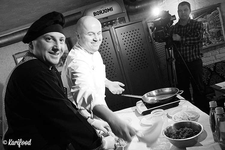 Пожалуй, самый мощный мотиватор для поездки в Грузию — яркий, шумный и вкусный праздник «Тбилисоба на Андреевском». Обсуждать культурное наследие, исторические параллели и прочие духовные ценности приятней и разумней за едой, а гений Тараса и прелесть Тамары воспевать, крепко держа в руках бокал саперави или рюмку крепчайшей виноградной чачи. В общем, еда правит миром, как ни крути. По приглашению Димы Борисова, при поддержке посольства Грузии в Украине и компании Borjomi, как соорганизаторов Праздника грузинской еды, в ресторан украинской кухни Канапа заглянули два прекрасных Шота — Шота Двалашвили, шеф тбилисского Maspindzelo (какие там хинкали, м-м-м!), и Шота Годердзишвили из киевского Kiev Hilton, которые превратили дежурный пресс-ланч в настоящий грузинский обед.