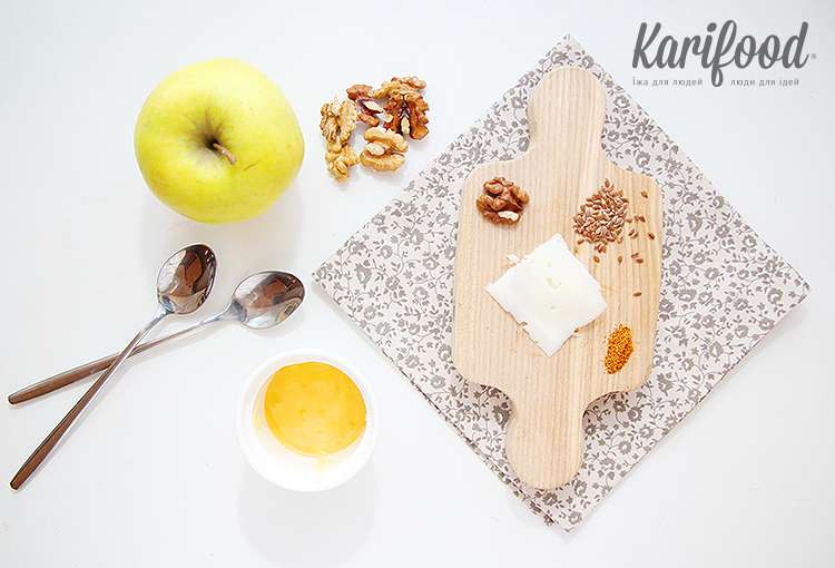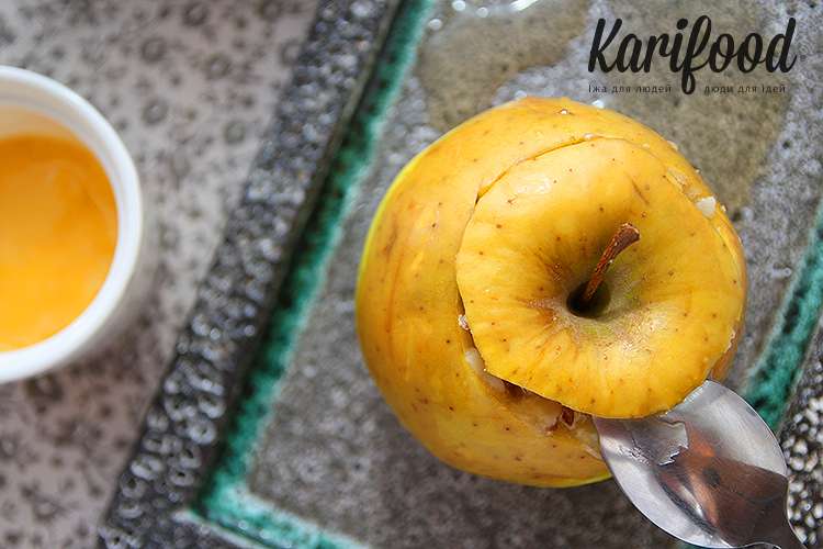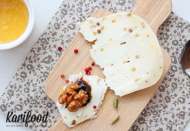 Выдержанный козий сыр можно обыграть в десерте из печёного кислого яблока с корицей, медом и орехами. Уже в готовое яблоко добавьте пару ломтиков сыра, чтобы обогатить вкус простого домашнего десерта.