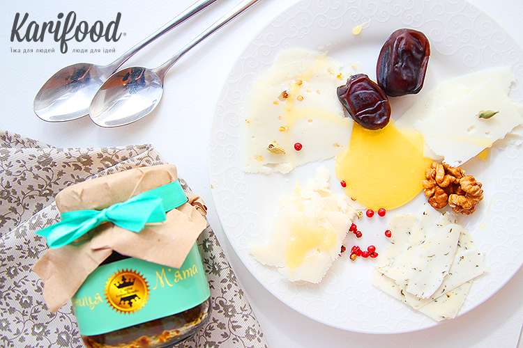 К выдержанному сыру отлично подходит пьянящий фирменный джем из мяты и клубники от Сирне Королівство, а вот над молодыми сырами джем доминирует настолько, что полностью перебивает их вкус.