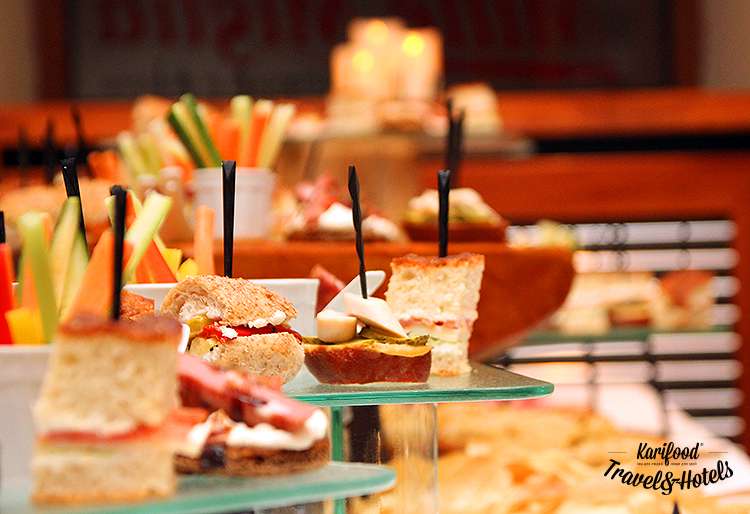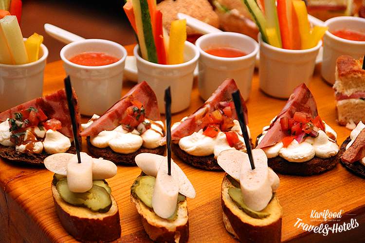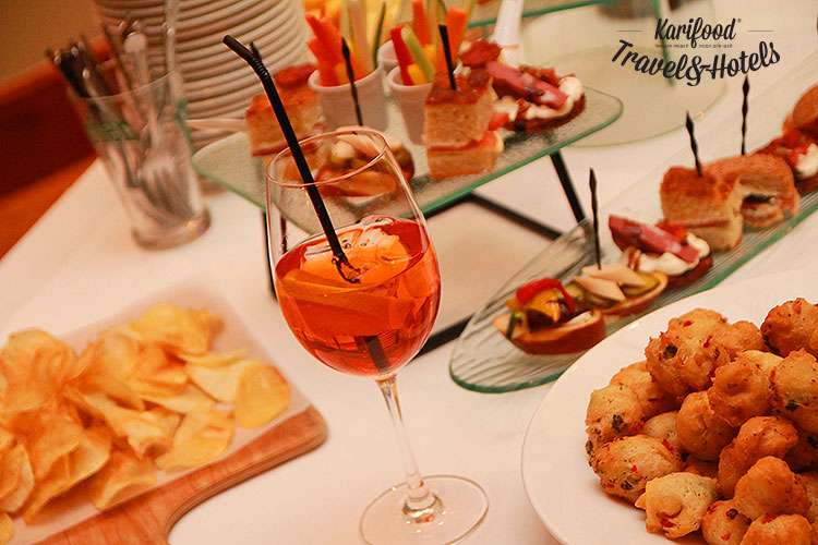 За фиксированную стоимость в 99 грн вы получаете напиток на выбор — бокал игристого, апероль или другой коктейль и безлимитный фингер-фуд бар с мини-сендвичами, луковой фокаччей, овощными палочками, колбасками, прошутто, сыром, пончиками zeppole, грессини и прочей гастрономической миниатюристикой.