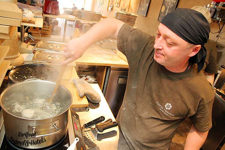 Девять видов хачапури, хинкали из-под ножа, кебабы и каре барашка «с дымком» прямо из тонира, мацони с мёдом и с мятой на десерт, грузинские вина, грузинские повара и полная посадка с самого утра.