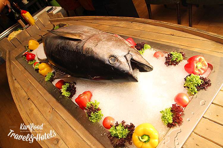 Желтоперого тунца с Мальдив доставили в ресторан РЫБАLOVE, где он почти сразу же отправился под нож шефа Далибора Миленковича. Поэтому в цельном виде рыбину теперь можно увидеть только на фото, а вот её самые аппетитные части — на тарелке.