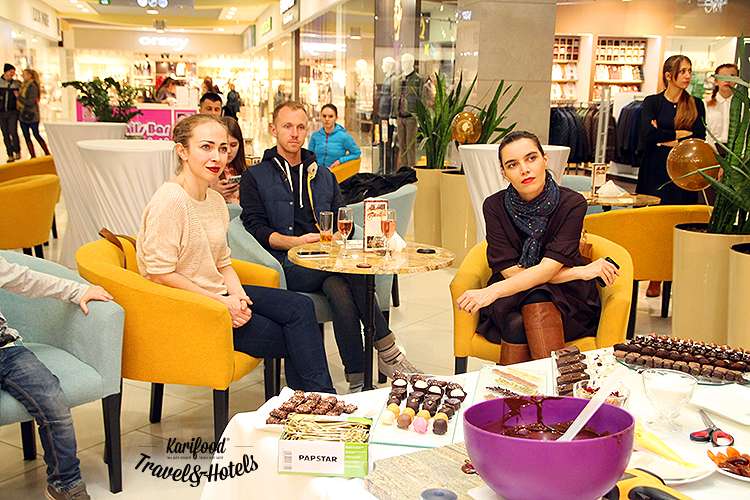 Шоколадный дом Von Kluschke работает только с натуральными ингредиентами — альпийскими травами, зелёными фисташками, сухофруктами, бельгийским шоколадом, восточными специями и пряностями, марципанами, сливками и орехами, и ко Дню шоколада в ТРЦ Гулливер демонстрировал всем желающим, как и из чего делают хорошие сладости.