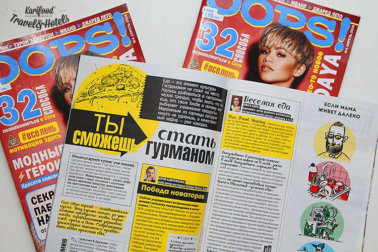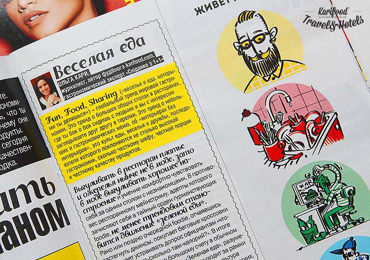В апрельском номере молодёжного журнала OOPS читайте мою небольшую колонку о трендах в современной еде, главный из которых — Fun, Food, Sharing. Это тренд о больших общих столах в ресторанах, где ты локоть о локоть сидишь с людьми, где вы с интересом заглядываете в тарелки друг другу и при этом не морщитесь брезгливо, когда кто-то из соседей по столу разглядывает клаб-сэндвичи или рамен на телячьих хвостах в вашей тарелке.