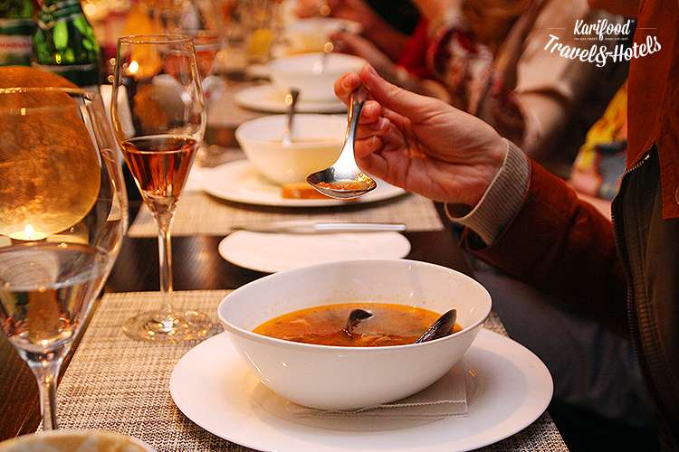 Кроме того, Стефано признаёт только классический тирамису di casa, который совсем не имеет никакого отношения ко всяким healthy и low-fat трендам — маскарпоне, желтки, а сверху шоколад! Интервью со Стефано скоро читайте на Karifood, а пока приходите к нему на гигантские равиоли с текучим желтком внутри, на хрустящие брускетты, пасту и, конечно же, на рыбный суп и домашний тирамису.