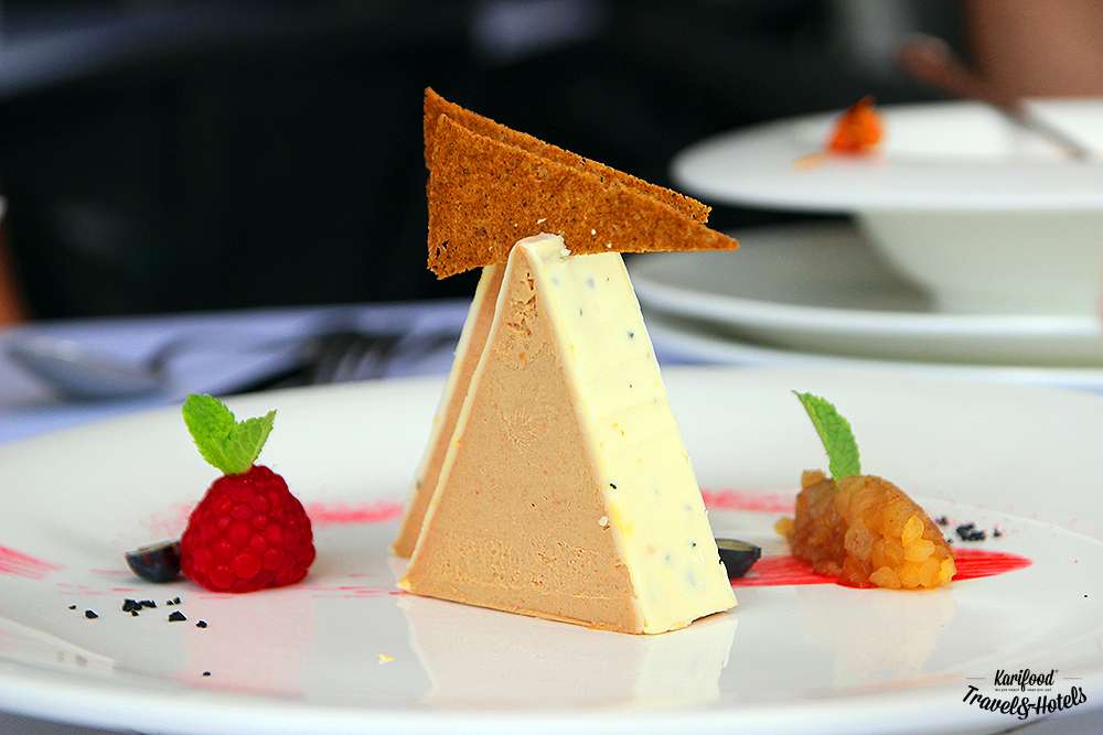 Помимо летней странички, заведение обновило и основное меню. Треугольники гусиной печени в оболочке сливочного масла подают с хрустящими хлебными чипсами, малиной и фруктовым компоте – блюдо не из самых диетических, но пока Киев поливает дождем, такая сытная закуска позволительна даже в летнем меню.
