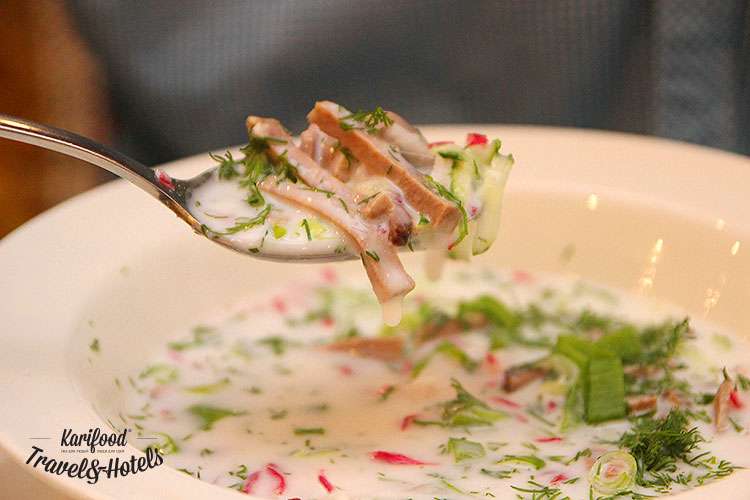 Крымско-татарский Мусафир стабильно радует кофе в джезве и сладостями, янтыками, чебуреками, пловом и хумусом, а для тех, кто не засчитывает начала лета без первой свеженькой окрошки – в меню есть язма, кисломолочный холодный суп с первыми овощами и легким мясом.