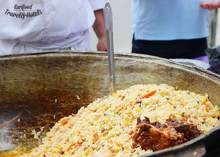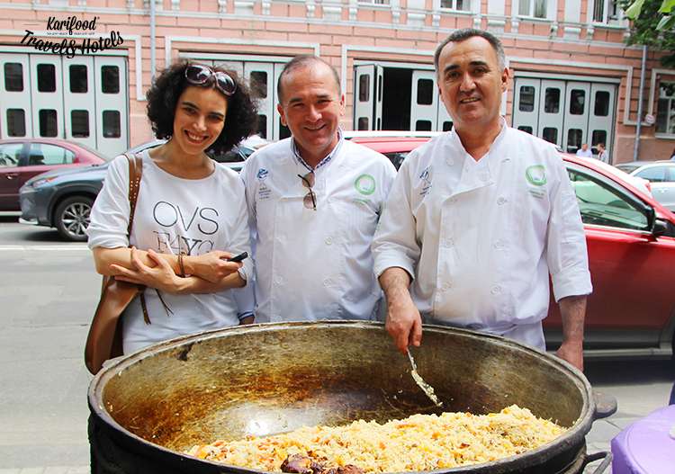 Кто откажется от порции настоящего узбекского плова, тем более, если он приготовлен по всем правилам в казане, на курдючном жиру, с желтой морковью и зирой, да еще и руками Олимжана Норбаева, Почетного члена Ассоциации поваров Узбекистана!?