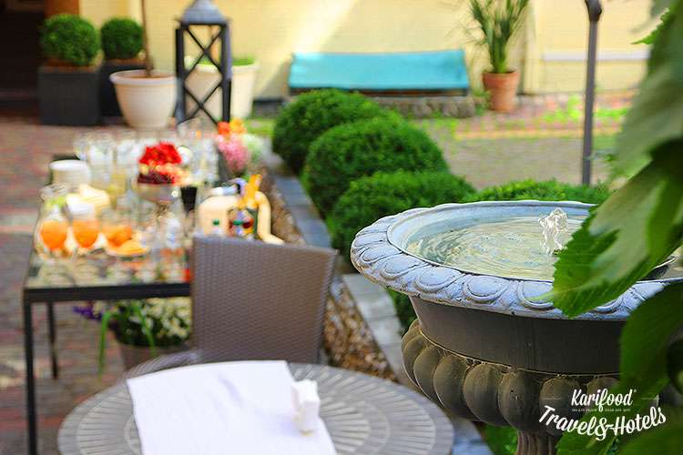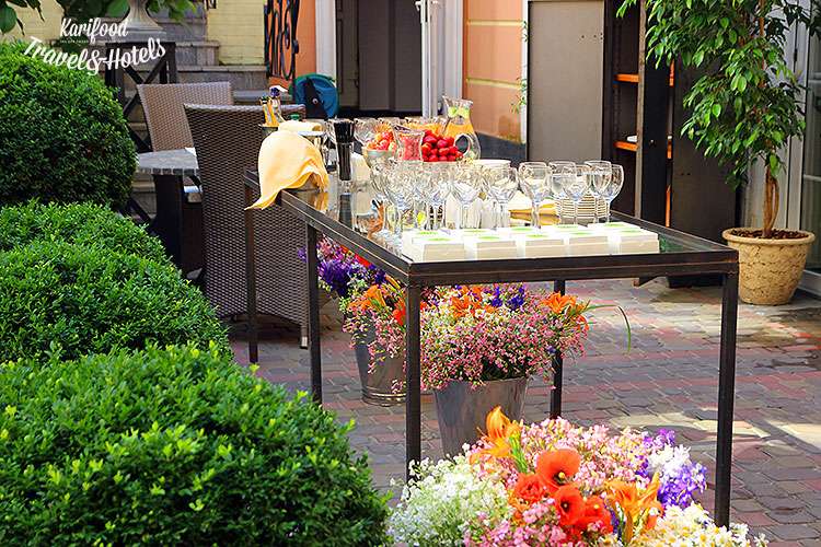 Если жара, голод и жажда вдруг застали внезапно посреди Андреевского спуска (особенно это касается тех смельчаков, которые не спускаются вниз, а взбираются по спуску вверх) – перевести дух приглашает бутик-отель Воздвиженкий.