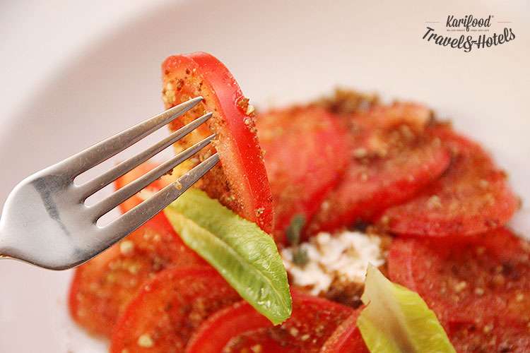 Во-вторых, салат с рапанами и молодым картофелем, мясные деликатесы собственного приготовления, и очень «приемский» салат с херсонскими сладкими томатами и рикоттой — томаты посыпаны душистой крошкой бородинского хлеба (кто ел ризотто с бородинским хлебом от Приемского в ресторане «Одесса», тот знает, о чем речь!).
