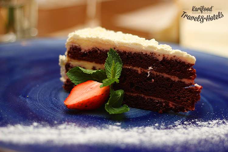 Ещё здесь хороши перепёлка, вареники и стейки, а самое главное — десерты! «Красный бархат» готовят без единого химического красителя, подмешивая в тесто печёную свеклу.