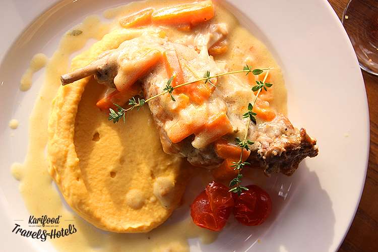 Салат со скумбрией домашнего копчения, щучья икра по-одесски с луковым соусом и стружкой лимонной цедры, паштет из печени индейки, стейк из говяжьей щеки, печёные перцы с карпатским сыром Хуст, кролик в сливочном соусе — настоящее осеннее раздолье перед приближающимся постом.
