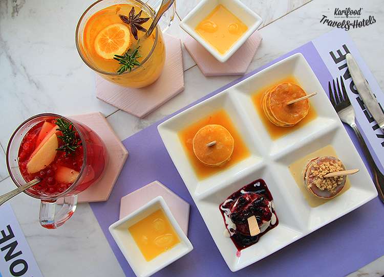 Можно заказать стандартную порцию классических панкейков, но мини-ассорти в миллион раз симпатичнее, к тому же, за один раз даёт возможность попробовать четыре вида сладких соусов: «пьяный апельсин», кленовый сироп с орешками, с-ума-сойти-какая-вкусная-сгущёнка и маскарпоне с вареньем.
