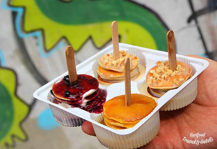 Эти малютки-панкейки будто приготовлены на кукольной плите в кукольном домике — до того они милые и маленькие! А ещё это идеальный take-away — блинчики запаковывают в коробку с четырьмя углублениями, что позволяет поедать их чуть ли не на ходу и без риска облить вареньем светлое весеннее пальто.
