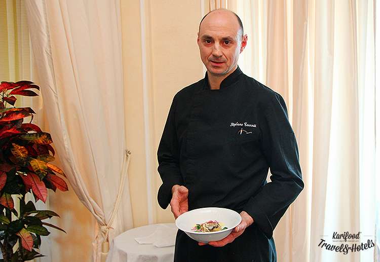 На мастер-классе для шеф-поваров в отеле Premier Palace Hotel Стефан Турнье помимо signature-супа приготовил нереальный компоте из клубники, лука, мёда и белого вина, которым гарнировал ломтики обжаренной фуа-гра.