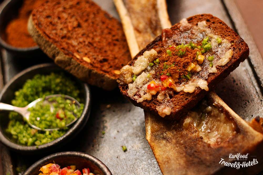 Теперь о главном: обязательно пробуйте здесь мозговую кость, которую подают с крошками бородинского хлеба и острым соусом.