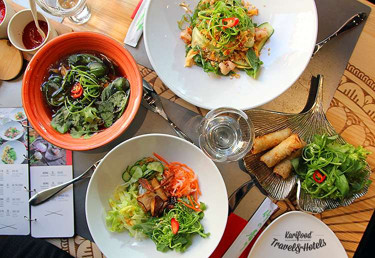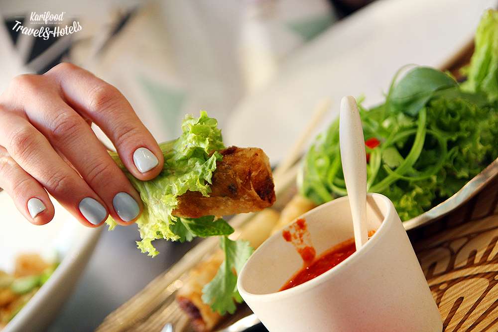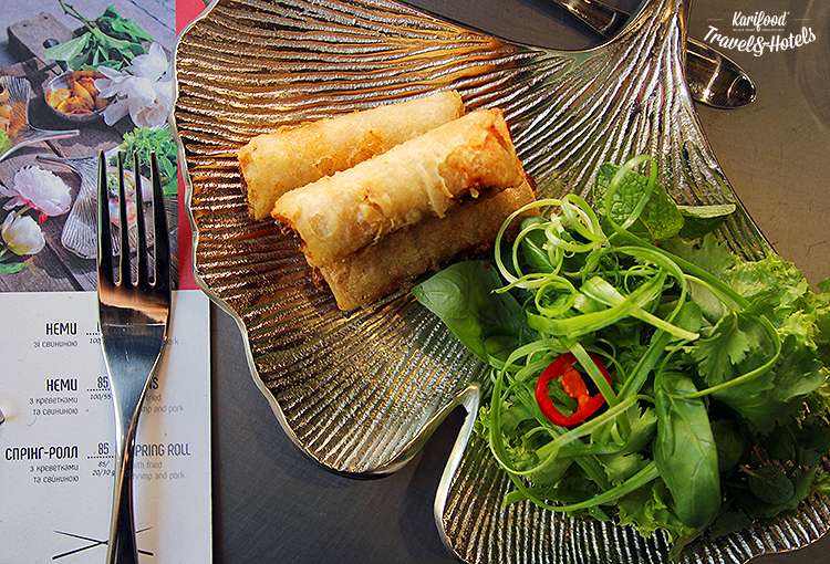 Немы делают трёх видов — с креветками, со свининой и с миксом из креветок и свинины и подают с тарелкой зелени, порции сытные, но оставляют шанс десертам.