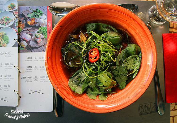 Меню в Chang небольшое, есть кое-что вкусное и для вегетарианцев — например, салат с тофу и веганский фо на крепком овощном бульоне.