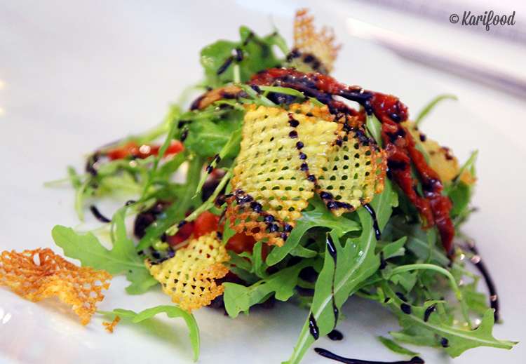 Остальных гостей салат не очень впечатлил из-за жирных картофельных чипсов на горке зелени, но мне понравился — не помню уже, когда последний раз на моей тарелке оказывался хрустящий картофель. Запретные радости всегда самые вкусные!