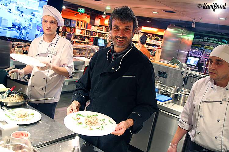 По словам Франческо Галло, амбассадора Garofalo, на производстве работают целыми поколениями: сначала отец, затем сын, а потом и внуки! В Киев Франческо привез своего друга, шефа Ива Паскале из Lido Lazzarella Resturant, который на открытой кухне фуд-бутика Le Silpo приготовил три вида вкуснейшей пасты, к каждой из которых сомелье из Le Silpo подобрал идеальный винный аккомпанемент.