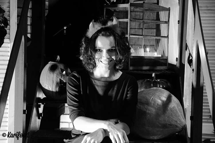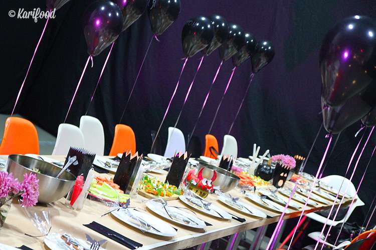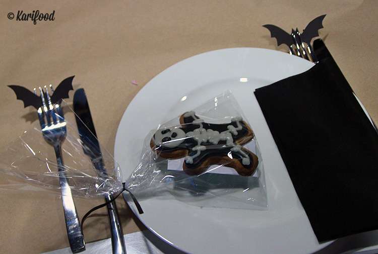 Именные шарики, страшно-страшный пряник-подарок каждому гостю (мне достался со скелетиком!), ужин при свечах, печеная тыква с моцареллой, салат с брокколи и виноградом, домашний майонез, а для фанатов здорового образа жизни — гора морковных и сельдереевых палочек. Король стола — чили кон карне с зирой и горьким шоколадом!