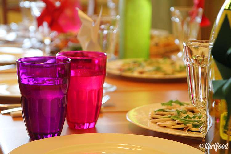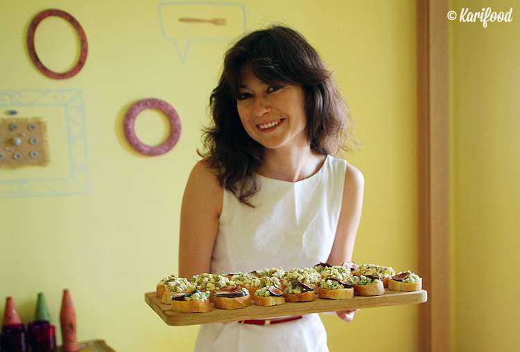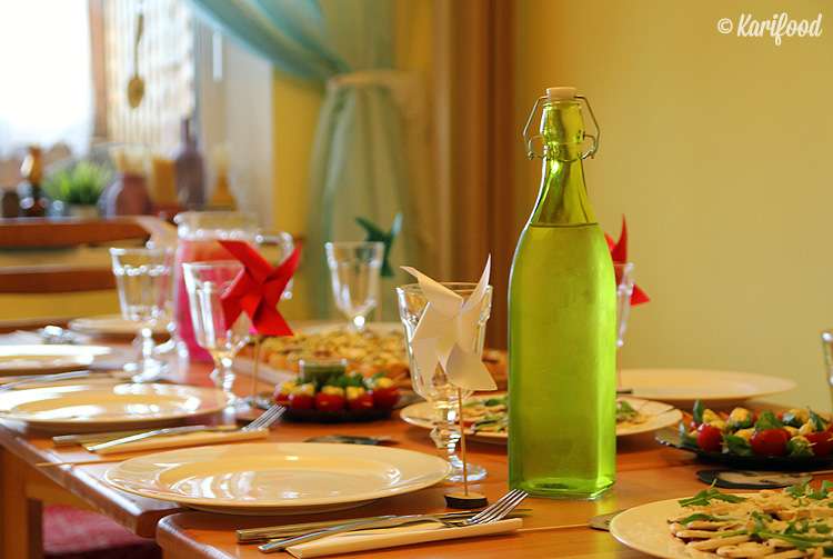 Юля в поварском переднике разливает по графинам лимонад. На часах без десяти минут шесть — вот-вот начнут собираться гости. Длинный обеденный стол накрыт, на подоконниках блюда и чаши с пастой, возле каждой тарелки деревянные шпажки, украшенные сверху картонными портретами Челентано или сеньоры Белуччи.