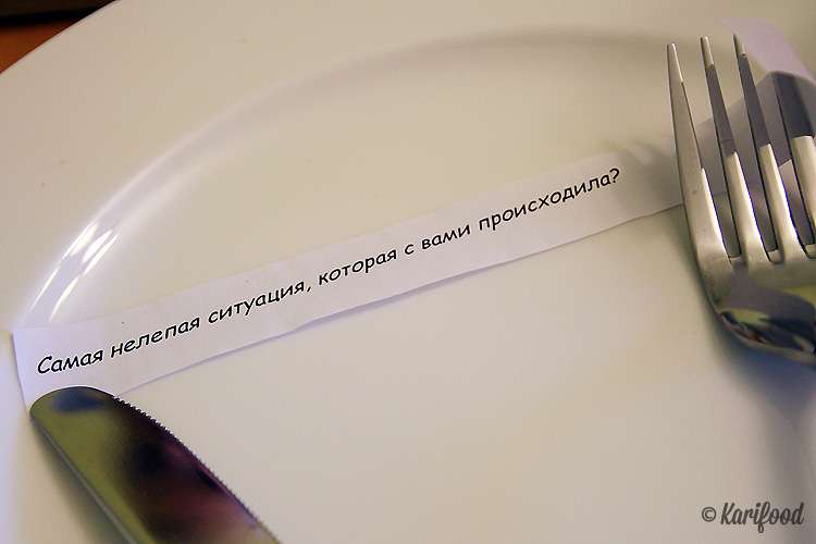 — Поскольку в основном люди, которые приходят к нам, незнакомы друг с другом, мы стараемся их разговорить, — рассказывает Юля. — За столом мы играем в игры на знакомства, где люди могут себя презентовать, каждый имеет слово, чтобы поделиться мыслями о любимых местах, о любимых книгах и занятиях. Всё-таки 10-12 человек обязательно найдут точки пересечения.