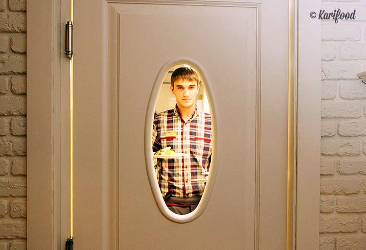 Пока другой зал заведения, более демократичный к дресс-коду, но не к еде — Capuleti, продолжает кормить вечерние компании друзей пастой, тушёным в сливках кроликом и тосканской панцанеллой с помидорами и хрустящим луком, за стеклянной дверью в приглушённом свете белых абажуров Montecchi начинается вечернее представление и маленькое гастро-путешествие по Италии.