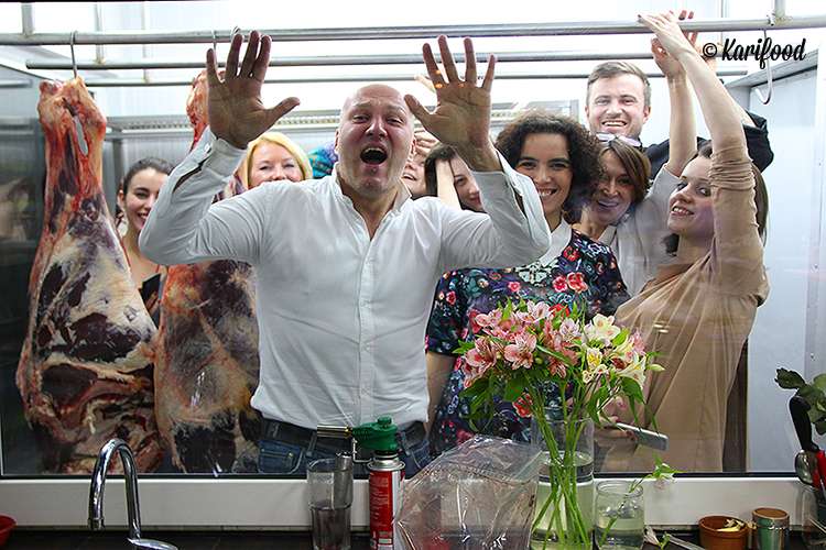 Поход в холодильную камеру с мясными тушами и ненавязчивое подглядывание за кипящей, шипящей, бурлящей жизнью ресторана не из гостевого зала, а и самого сердца заведения — его кухни, превратило знакомство с сезонным обновлением меню в настоящий ивент из категории «хлеба и зрелищ».