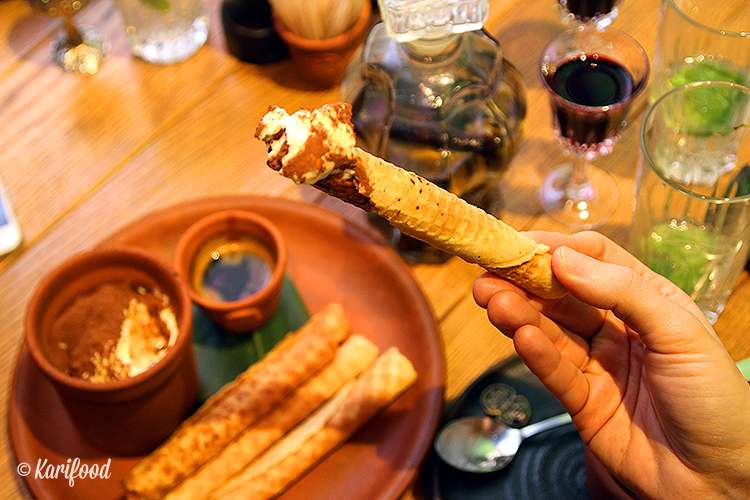 Так, тирамису в Oxota Na Ovets приносят в виде отдельной плошки с кремом (маскарпоне, взбитый с желтками и пудрой), чашки с крепким кофе, а вместо классических савоярди подают вафельные трубочки по бабушкиному рецепту шефа. Хочешь — макаешь трубочки в кофе, а затем в крем, хочешь, ешь крем трубочками, а хочешь — съедаешь отдельно крем, запиваешь его кофе и на закуску хрустишь трубочкой или заворачиваешь её в салфетку и уносишь с собою, как приятное, но быстросъедаемое воспоминание о проведённом вечере в Oxota Na Ovets.