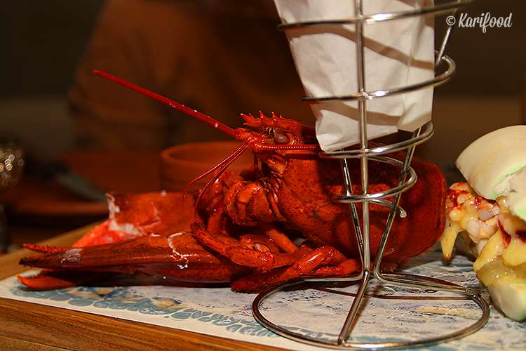Не проходите мимо лобстер-бургер-сета — его подают с ломтиками обжаренного картофеля, в виде половинки лобстера с клешнями и с двумя бургерами в булочках, подкрашенных зелёным чаем и с соусом тартар.
