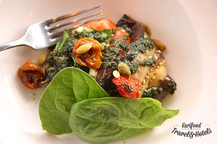 В общем, все, кто на диете, на ЗОЖ и ПП — сидите дома. Или же выберите из меню закусок печёные перцы с закарпатским сыром Хуст, соусом песто из украинских трав и семечек подсолнуха, который, как ни крути, существенно обогатит калориями дневной рацион.