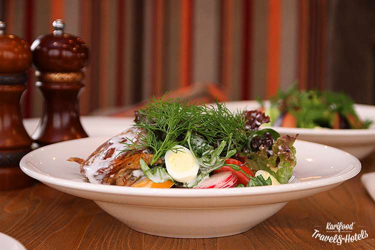 Деликатесная щучья икра по-одесски (с луковым соусом, лимонной цедрой и гренками со сливочным маслом), салат со скумбрией домашнего копчения, сочные телячьи щеки с красным перцем и аджикой — новое меню в ресторане украинской кухни Хуторець на Дніпрі настоящий праздник чревоугодия.