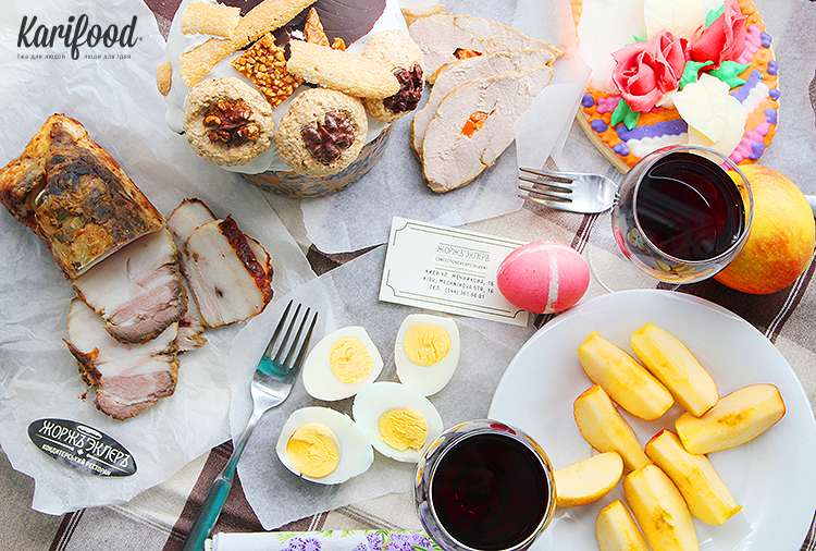 Украинский ресторан Канапа для своих поклонников приготовил два варианта пасхальных корзин — для большой или маленькой компании друзей. Крашанки, пасхальный кулич, наливка, хрен, буженина и восхитительная домашняя колбаса. Цена за маленькую корзину – 498 грн, за большую – 698 грн.
