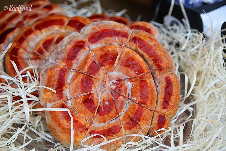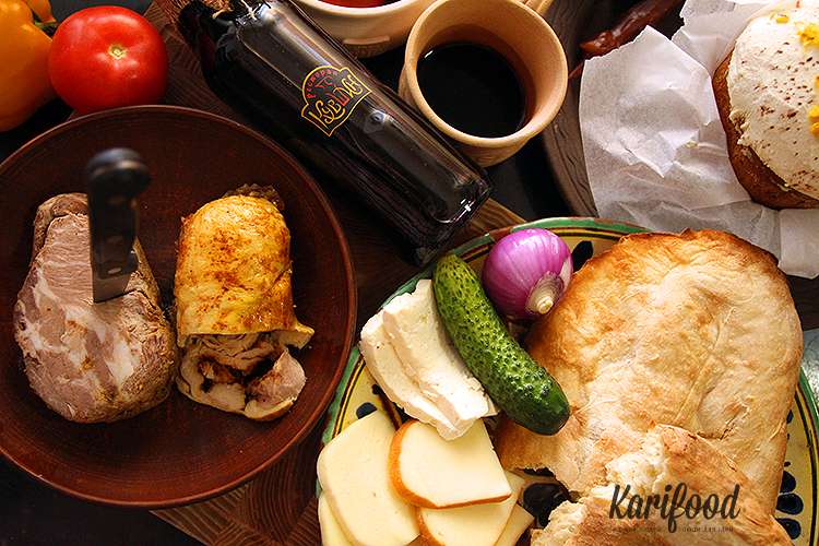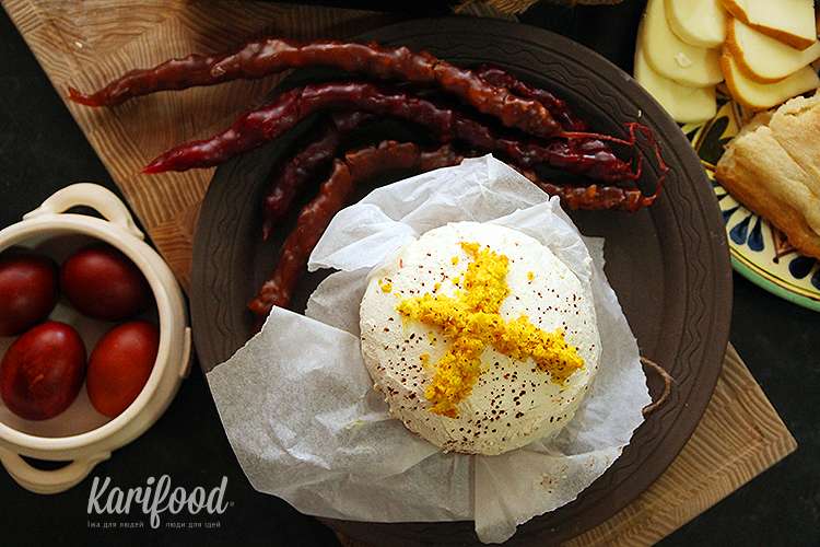 Свежий лаваш из тонира, буженина, рулет из курицы с острым перцем и пряностями, авторские сыры шефа Гургена, отдельно пакетик свежих вымытых овощей, две коробочки с пряными и острыми соусами, бутылка настойки, крашанки (в луковой шелухе), нарядный пасхальный кулич и… приготовьтесь к самому вкусному: четыре нити вкуснейшей чурчхеллы с грецкими орехами!