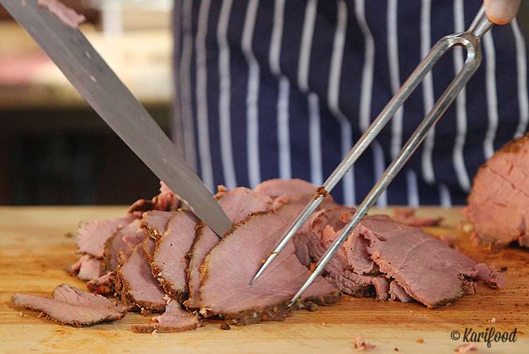 На Фестивале уличной еды пастрами будут собирать непосредственно перед подачей, чтобы и булочка поджаренная сохранила свой хруст, и мясо — телятина — ни в коем случае не подсохло. Главное — успеть занять за пастрами очередь прежде, чем на аромат подкопченного мяса сбегутся всевозможные фуди, гастрокритики и прочие охотники за деликатесами — велика вероятность, что они плотно оккупируют прилавок и не уйдут, пока не съедят всё до последней крошки!