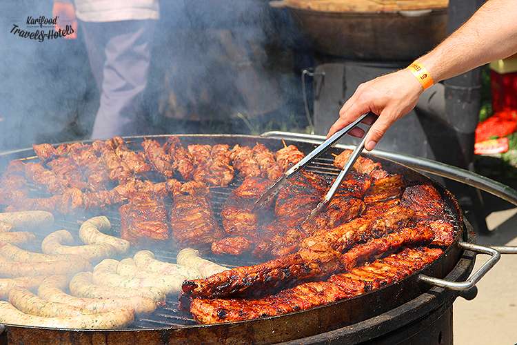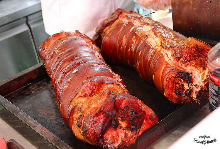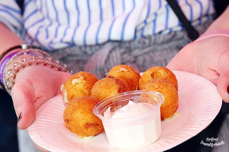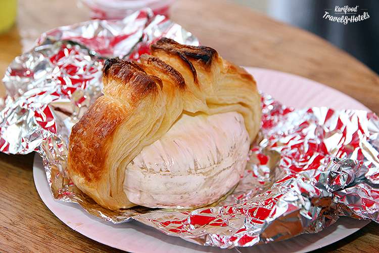От дождя (ну, без ливня стеной, какой же это уличный фест, правда?) спасал широкий козырёк фуд-трака Er Porchettaro, где запекали камамбер в слоёном тесте, подавали его с ягодным соусом, а ещё кормили улитками, сэндвичами с поркетой (копчёной в смокере), сырными крокетами.