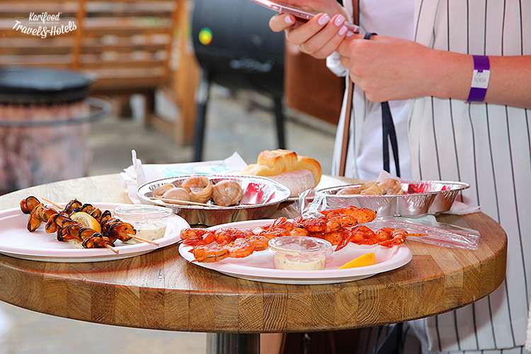 Кто успел до дождя пробежаться по фуд-корту, тот заедал вино устрицами, шашлычками из креветок и мидий, божественным хамоном и не менее божественными мини-эклерчиками.