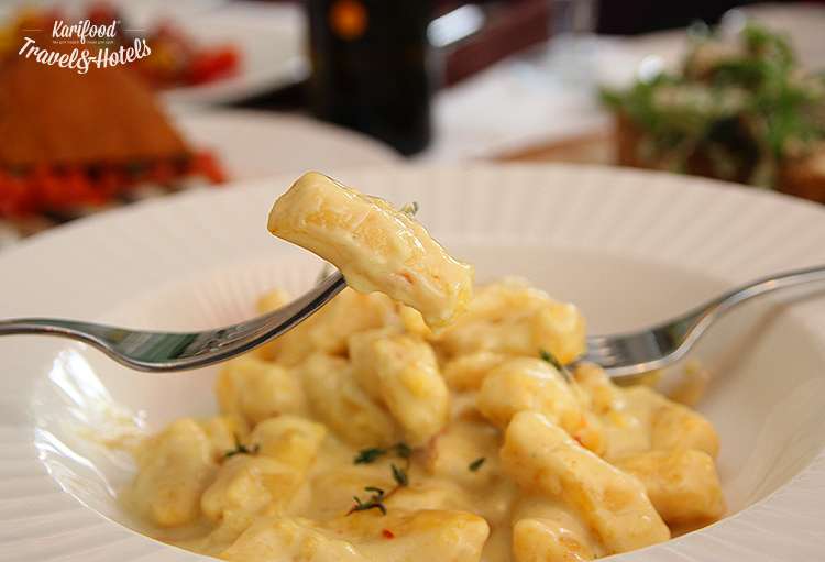 А вот ньокки с креветками и шафраном с начинкой из рикотты — персональный кандидат на то, чтобы остаться в основном меню, по крайней мере, пока температура за окном не перешагнет отметки в +20.