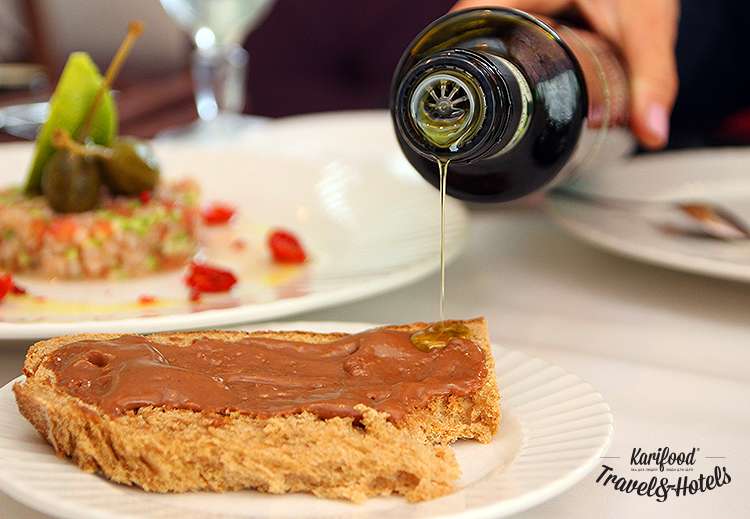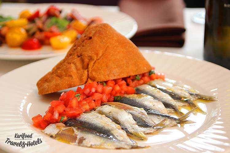 Наливаете масло в тарелку, отламываете кусочек хлеба или так прямо и кладете в тарелку весь ломоть, поливаете еще маслом сверху – всё, вот она, Сицилия, на одной фарфоровой тарелке вся, как есть, ещё и с соусом из вяленых томатов и анчоусов. С душистым золотистым хлебом, с которого капают зелёные ароматные капли масла, со всей простотой и рустикальностью.
