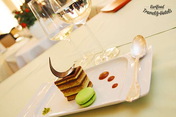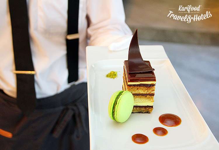 Десертное меню ресторана пополнилось фирменным десертом: многослойным бисквитом с тремя видами крема: фисташковым, шоколадным и вишнёвым, которые декорируют стружкой шоколада, карамельным соусом — такой соус вообще можно вынести в категорию самостоятельного десерта, подавая его с ложкой и больше ни с чем! — и с фисташковым пирожным макарон.