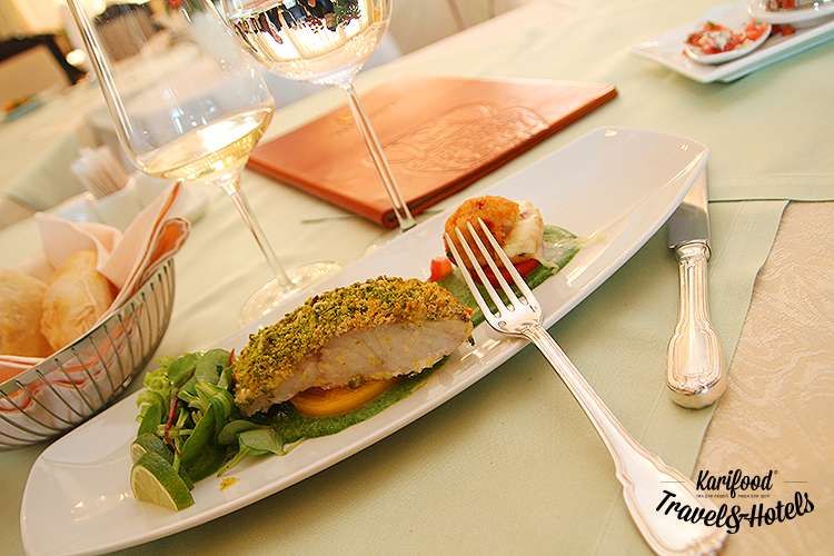 Что до обстоятельных основных позиций, то и здесь Викторя остаётся верна добротному сплетению локальной и средиземноморской тем: украинский судак подаётся под фисташковой корочкой на подушке из сливочно-шпинатного соуса с сытным аранчини — сицилийской закуской из риса, слепленной в форме шарика и обжаренной  в тонкой панировке.
